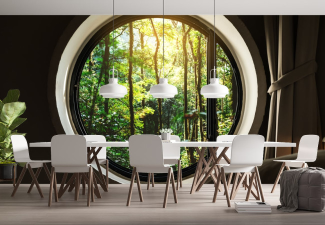 Papel pintado preencolado personalizado Trompe l'Oeil Foret Hublot