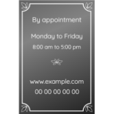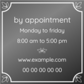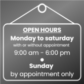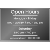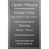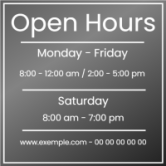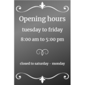 Elija el estilo de su horario: Existen muchos estilos diferentes para los horarios de escaparate, desde diseños minimalistas hasta diseños más elaborados y gráficos. Elija un estilo que refleje la imagen de marca de su empresa y que llame la atención de los clientes potenciales. Nuestro módulo en línea permite elegir un diseño prediseñado, para facilitar la creación de su horario de escaparate.