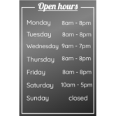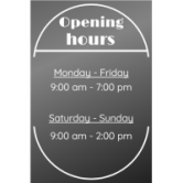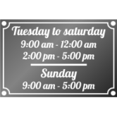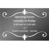 - Adaptarse al espacio disponible: Si su escaparate tiene una forma única o si dispone de un espacio limitado para mostrar su horario, una Etiqueta engomada horaria vitrina a medida puede ser la solución ideal. Puede diseñar una etiqueta que se adapte perfectamente al espacio disponible, manteniendo un aspecto profesional y atractivo.