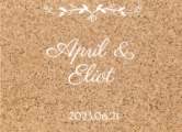 También es posible seleccionar un modelo de pegatina personalizada con un fondo que imita la madera o el corcho, que encajará perfectamente con la decoración campestre de su recepción.
